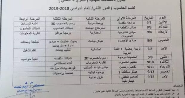 جدول الامتحانات النهائية لقسم الحاسبات الدور الثاني للعام الدراسي ٢٠١٨-٢٠١٩